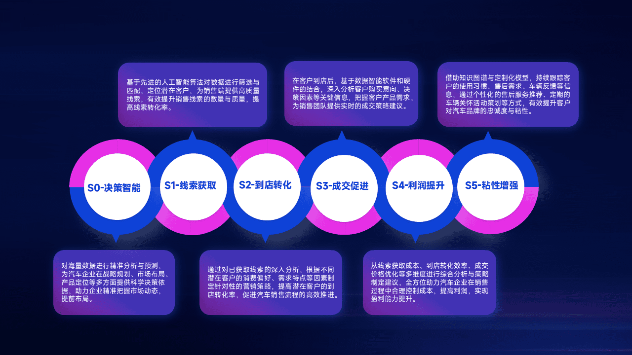 通过拓宽潜在客户来源、、优化线索分配并提高到店转化率,,,,以增强销售效率。。同时,,,利用线索数据不断优化分析模型,,有效提升转化率,,,扩大营销影响力。。。。